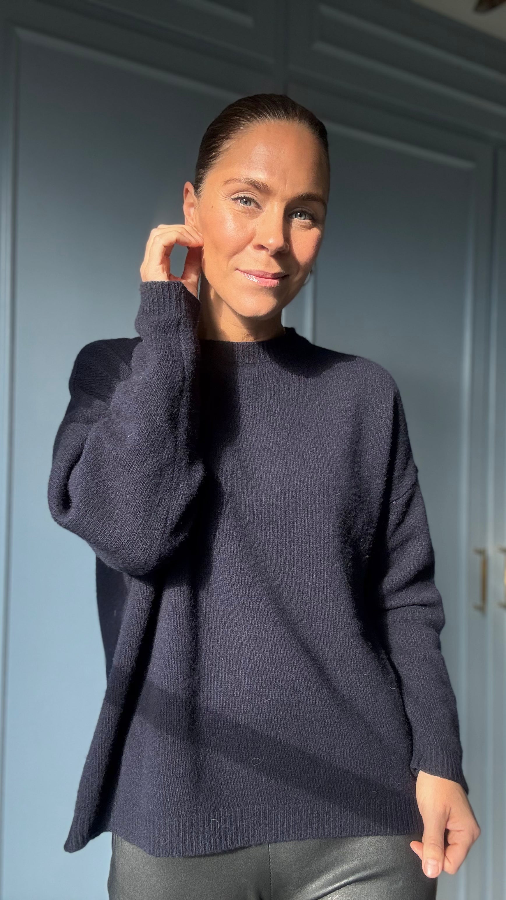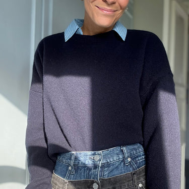 Derfor blev jeg SÅ glad, da jeg endelig fandt denne navyblå drøm i 100% merinould, MIDNIGHT MERINO, som er fremstillet i Italien! Den er så flot, lun og samtidig let i det.
