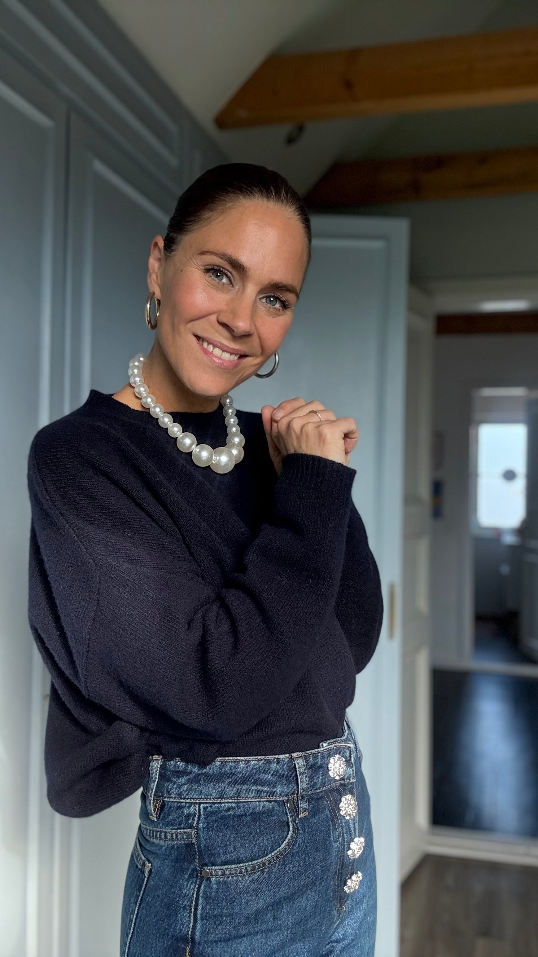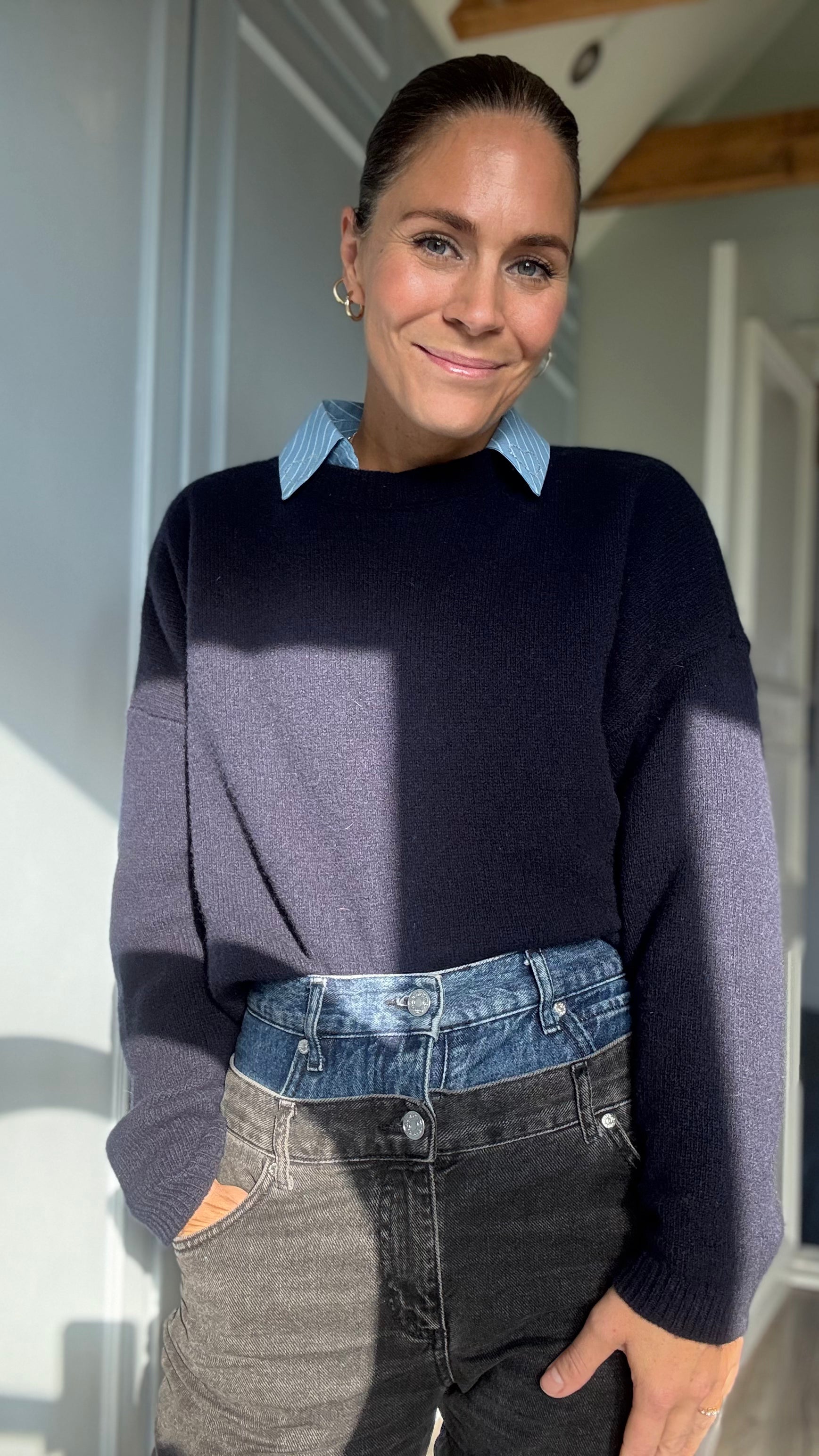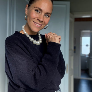 MIDNIGHT MERINO varmer uden at drukne én, og den er en anelse kortere i det end mange store striktrøjer, hvilket gør den mere stilet. Så vi kan se lidt cool ud og samtidig holde varmen!