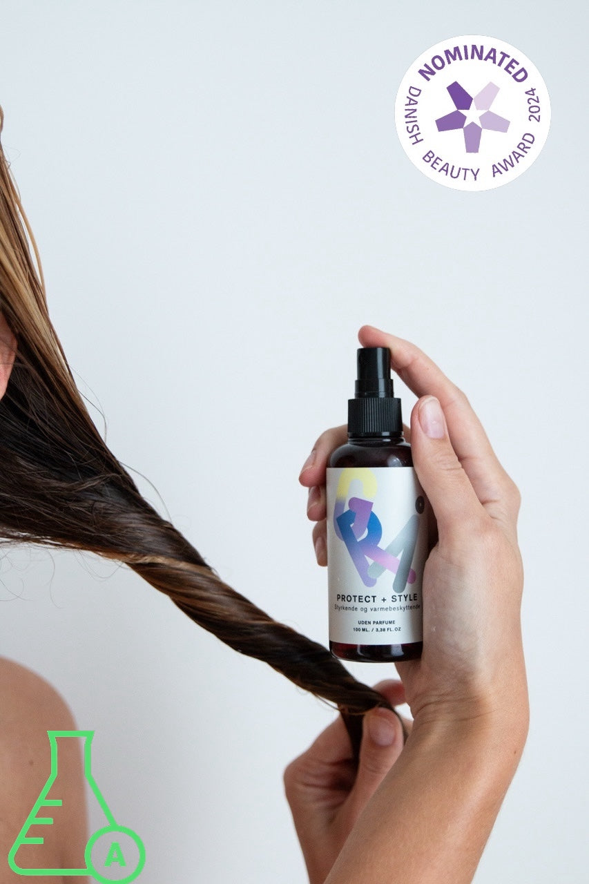 Og til sidst skal vi jo huske at beskytte håret fremfor at redde det fra de kvaler, vi har udsat det før. Derfor er det også FORBRUDT at føntørre, glatte og krølle hår uden at bruge varmebeskyttelse, og det er der netop i PROTECT + STYLE! Og sågar uuuuden silikone, alkohol og parfume, så håret ikke udtørres eller slides unødigt!