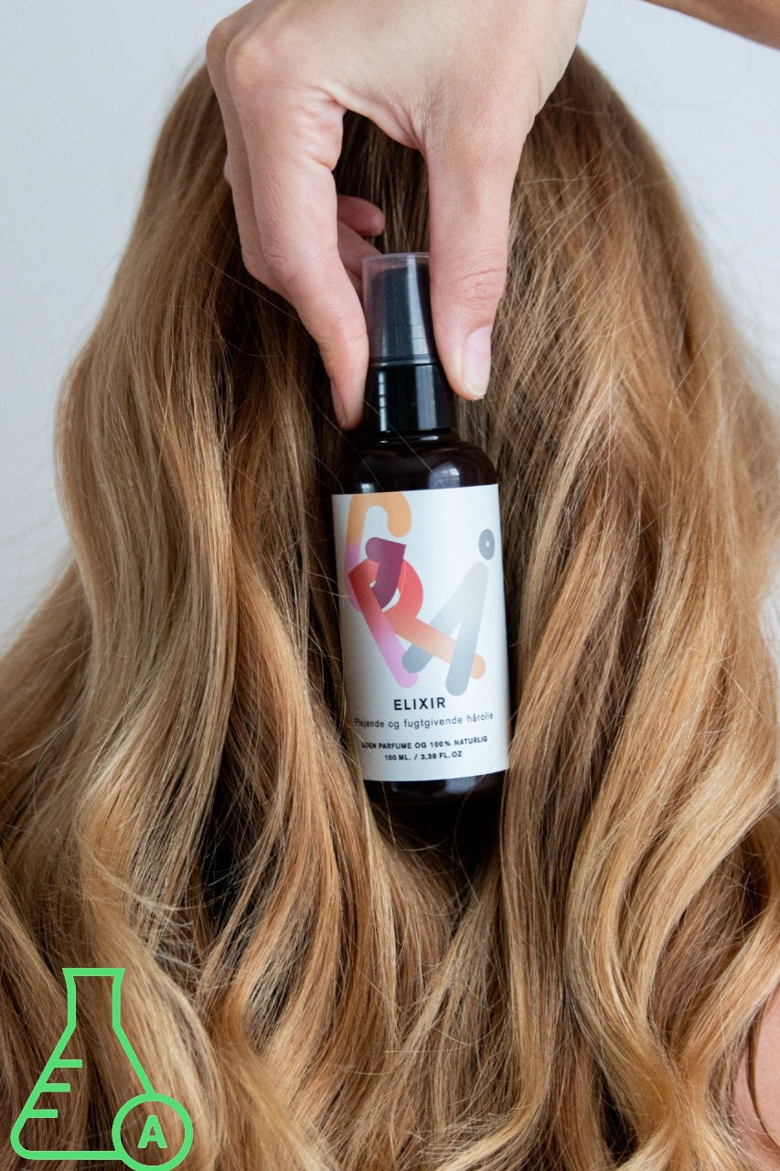 Desuden er ELIXIR formidabel i krøllet hår til at give mere glans og fugt til krøllerne, og den er god i hårspidserne, når de begynder at se tørre ud.
